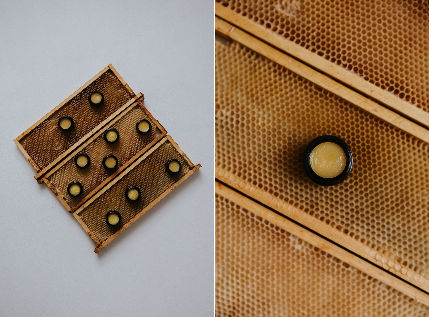 W niewielkim, szklanym słoiczku znajdziecie Państwo dobrze wszystkim znaną lanolinę, posiadającą właściwości wygładzające, zmiękczające, regenerujące i ochronne, wosk pszczeli, miód i ekstrakt z propolisu, nawilżająco-łagodzący pantenol, witaminy A, C i E, olej jojoba, estry masła shea, niezawodny skwalan trzcinowy, kwas mlekowy i glukonolakton (o działaniu nawilżającym) i inne cuda.