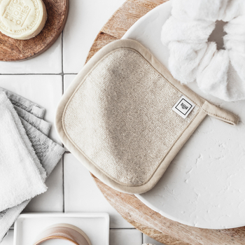 Wielorazowa, bambusowo-lniana ściereczka do oczyszczania i demakijażu twarzy.