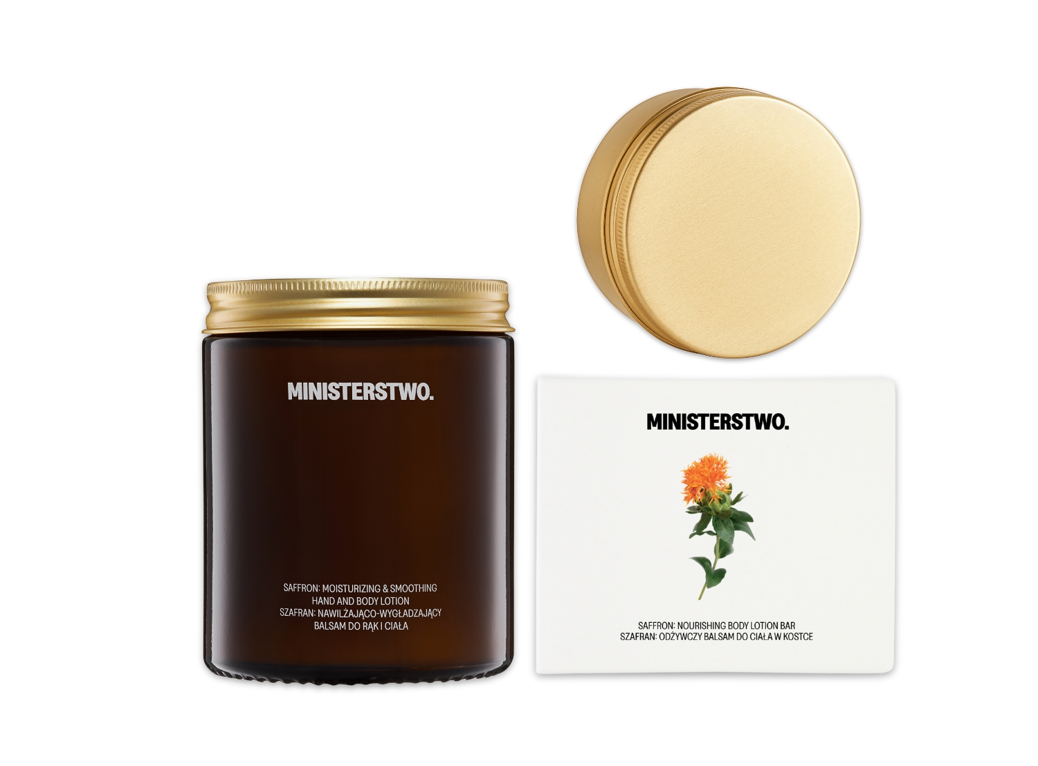 Wegańskie, szafranowe formuły w dwóch odsłonach: w słoiczku zamknęliśmy lekki, szybko wchłaniający się, nawilżający balsam, w kartoniku zaś less waste'ową, komptaktową kostkę, otulającą skórę przyjemnie pachnącą, ochronną warstwą, łączącą w sobie naturalne oleje, masła i woski. Kompozycja olejków eterycznych wykorzystanych w obydwu balsamach przenosi nas myślami do pięknych i ciepłych zakątków świata.
